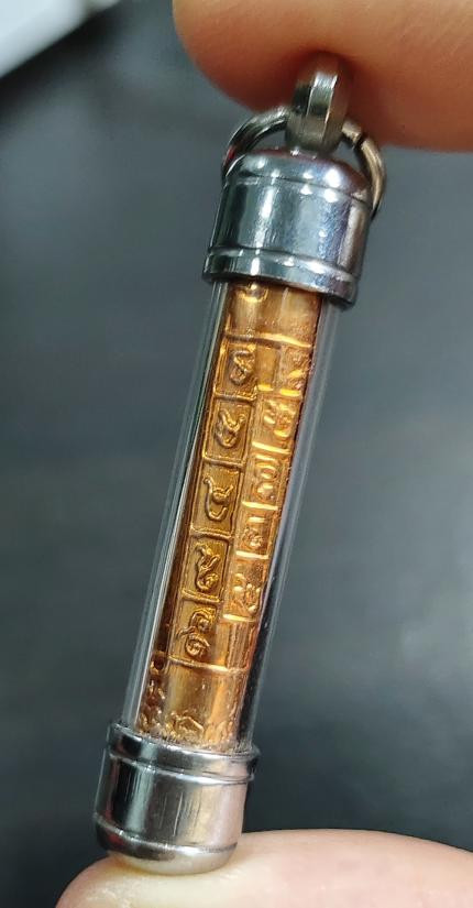 "ตะกรุดเงิน" ปั๊มยันต์โสฬสมหามงคล ตอกโค้ด " บ " (ยาว ๓ นิ้ว ) หลวงปู่บัว ถามโก |