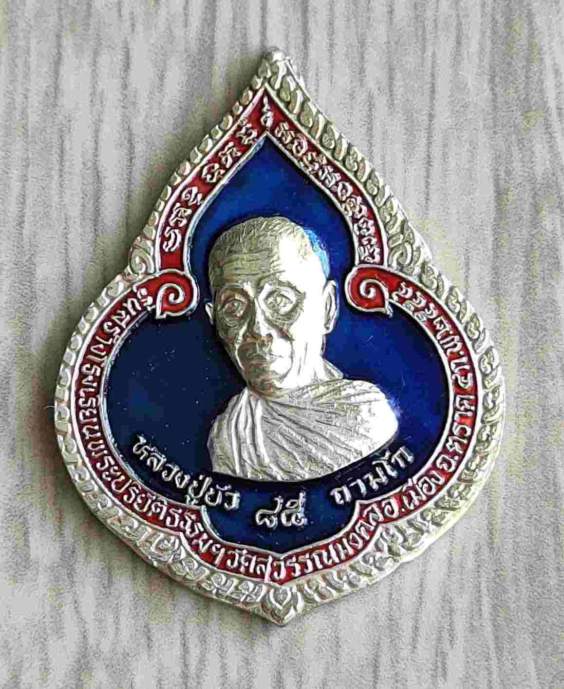 ล็อกเก็ต รุ่นโสฬสมงคล 90 ปี "เสริมบารมี โชคดี ร่ำรวย" ตั้งหน้ารถ จัมโบ้" สีฟ้า ปี 2558 หมายเลข 315 หลวงปู่บัว ถามโก |
