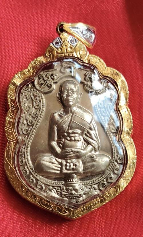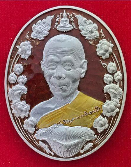 เคาะเดียวแดง **150** พระปรกใบมะขามหลวงปู่บัว วัดพระแก้ว เนื้อเงินสวยเดิมพร้อมกล่อง |