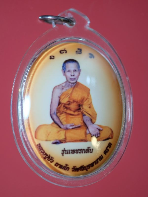 ล็อกเก็ตพิมพ์ใหญ่ฉากสีส้ม รุ่น ญสส. เพชรกลับ หลวงปู่บัว ถามโก วัดศรีบุรพาราม พศ.2553 |