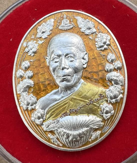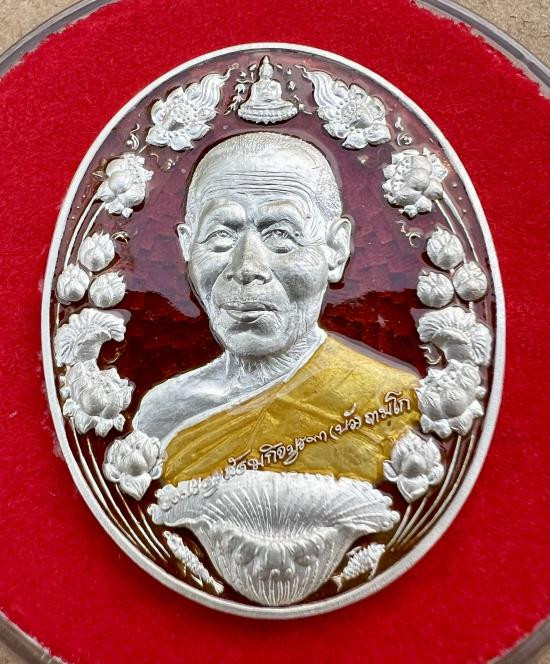 เหรียญนั่งพานใหญ่ เนื้อเงิน หลวงปู่บัว ถามโก ปี 2539 *สภาพสวย กล่องเดิม* |