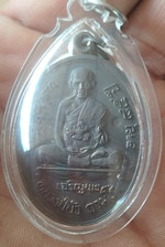 เหรียญนั่งพานใหญ่ เนื้อนวโลหะ หลวงปู่บัว ถามโก ปี 2539 |