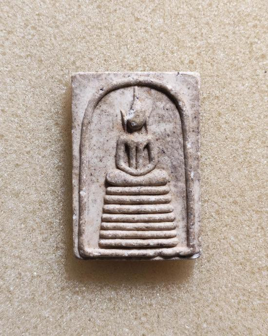 วัดใจ 290.พระพิมพ์จันทร์ลอยรุ่นแรก หลวงปู่ขาว วัดถ้ำกลองเพล ปี 2511 เนื้อชานหมาก มีเส้นเกศา