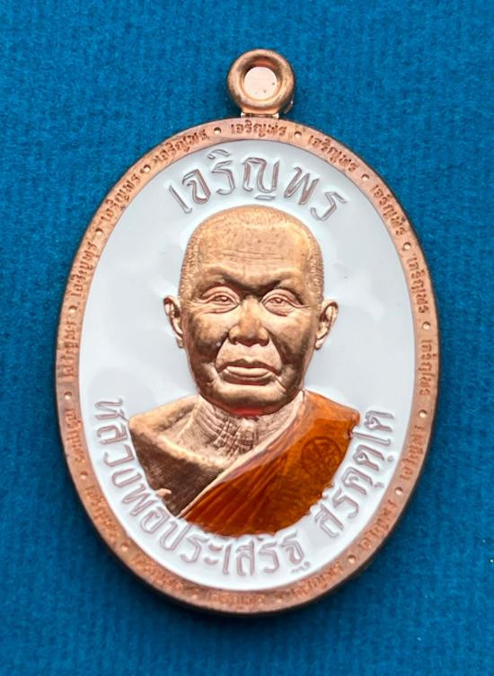 เหรียญรุ่นเลื่อนสมณศักดิ์ อายุวัฒนะมงคล พิมพ์นั่งพาน พระอาจารย์ต้อม วัดท่าสะแบง จังหวัดร้อยเอ็ด เนื้อปัญจะ หมายเลข 959 พระอยู่ในซีลเดิมยังไม่แกะ พร้อมกล่อง |