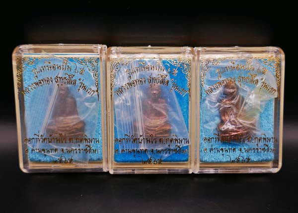 !!!!วัดใจ 9 บาท!!!! 3 องค์ รูปเหมือนปั๊ม หลวงพ่อทอง รุ่นแรก ออกวัดบ้านไร่ เนื้อทองแดง พร้อมกล่องเดิม พ.ศ.2565 |