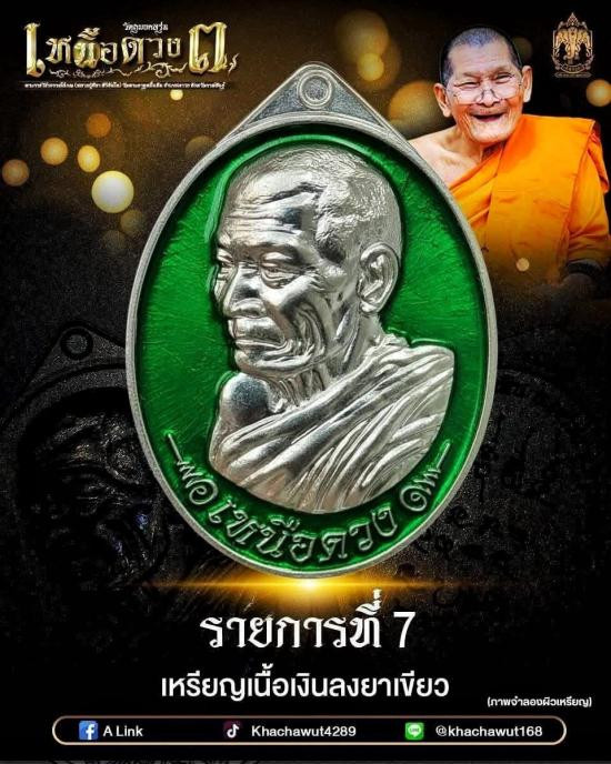 เหรียญเหนือดวง3 หลวงปู่มหาศิลา วัดพระธาตุหมื่นหิน เนื้อเงินลงยาสีเขียว ไม่แกะซีลลุ้นเลขสวย ปี2569 |