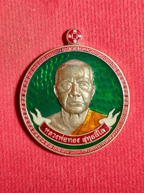 เหรียญหลวงพ่อทอง รุ่นกายเทพ ปี 2563 เนื้อเงิน 99.9 ลงยาสีธงชาติ หนัก 15.24 กรัม หมายเลข 38 |