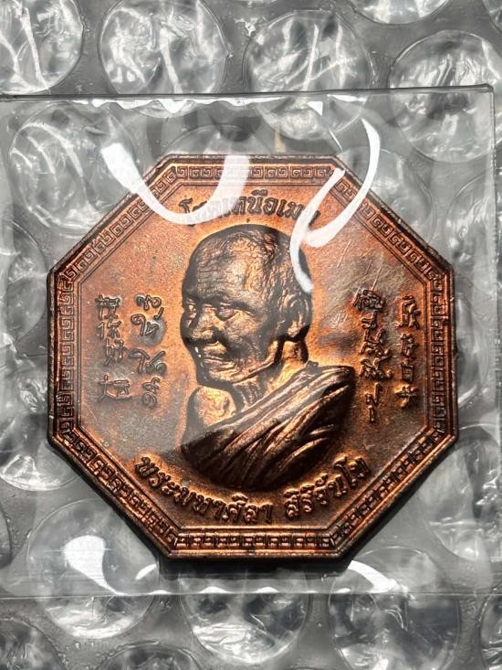 เหรียญโชคเหนือเมฆ หลวงปู่มหาศิลา สิริจันโท จ.กาฬสินธุ์ เนื้อทองแดง ปี63 ตอกโค๊ด เลข8664 |