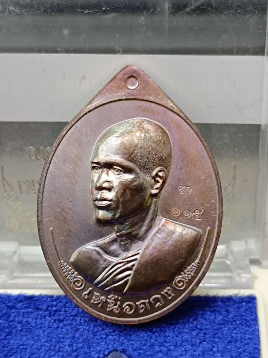เหรียญเหนือดวง พระอาจารย์ต้อม วัดท่าสะแบง ร้อยเอ็ด เนื้อมหาชนวน รุ้งจ้าวน้ำเงิน หมายเลข 115 |