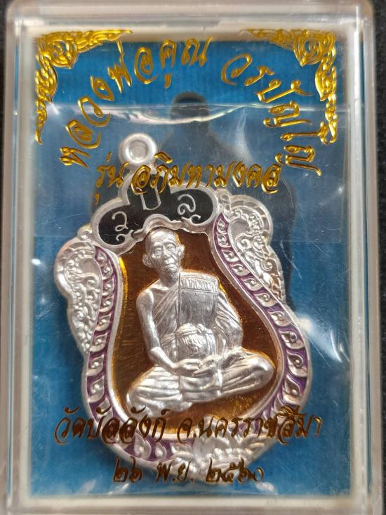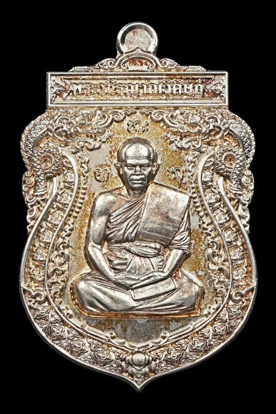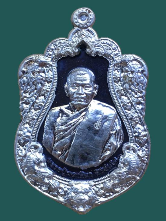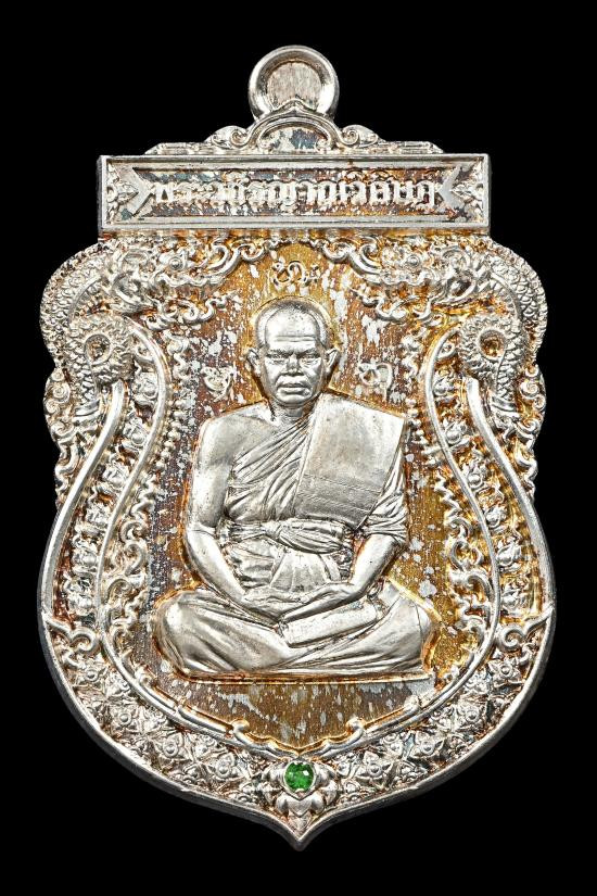 เคาะเดียว หลวงปู่ศิลา รุ่นมหาจักรพรรดิยอดรวย เหรียญปะฉลุนวะพรายทององค์เงิน หน้ากากเงินจีวรทองขอบเงินลงยา เลข 45 พร้อมใบเซอร์
