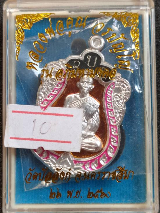 พระอาจารย์ต้อม วัดท่าสะแบง จ.ร้อยเอ็ด รุ่นรวยนะ9ดี พิมพ์แกะสด เนื้อเงิน No.221 จัดสร้างโดย ป๋าต้อย เมืองนนท์