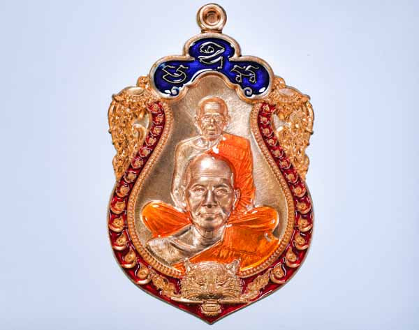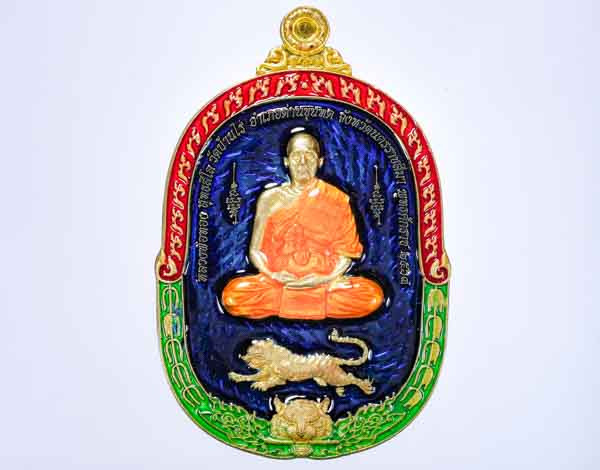 เคาะเดียว พระอาจารย์ต้อม วัดท่าสะแบง จ.ร้อยเอ็ด รุ่นรวยนะ9ดี พิมพ์เสือคู่บารมี (รายการชุดลังทองคำ เนื้อเงินลงยาสามสี หลังชนวน ) No.16 พร้อมกล่องเดิม