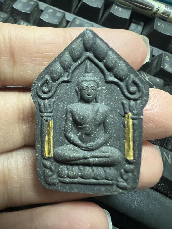 พระผงเสมาเมตตามหามงคลปี๖๐ ลป.จื่อ วัดเขาตาเงาะ เนื้อผงชานหมากฝังตะกรุด ปิดทอง-จีวร |