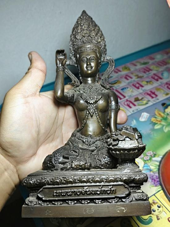 หลวงปู่หงษ์ พระแม่ธรณี รุ่นแรก เนื้อสำริด ปี 2549 พร้อมซองเดิม ตอกโค๊ตตอกหมายเลขใต้ฐาน |