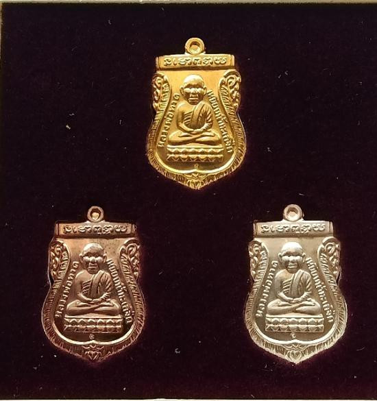 เหรียญหลวงปู่ทวด - หลวงปู่คำบุ รุ่นกันภัย เนื้อกระไหล่ ทอง ,เงิน , นาค วัดกุดชมพู จ.อุบล |