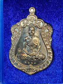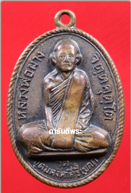 เหรียญเลื่อนสมณศักดิ์ หลวงพ่อทอง วัดพระพุทธบาทเขายายหอม จ.ชัยภูมิ เนื้อทองแดงรมมันปู กล่องเดิมจากวัด |