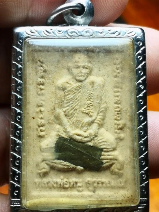 รูปภาพห้อยคอเต็มองค์ หลังบรรจุจีวร หลวงปู่ศิลา สิริจันโท หมายเลข 12268 พร้อมเข็มกลัดวัดพระธาตุหมื่นหิน และสายสิน |