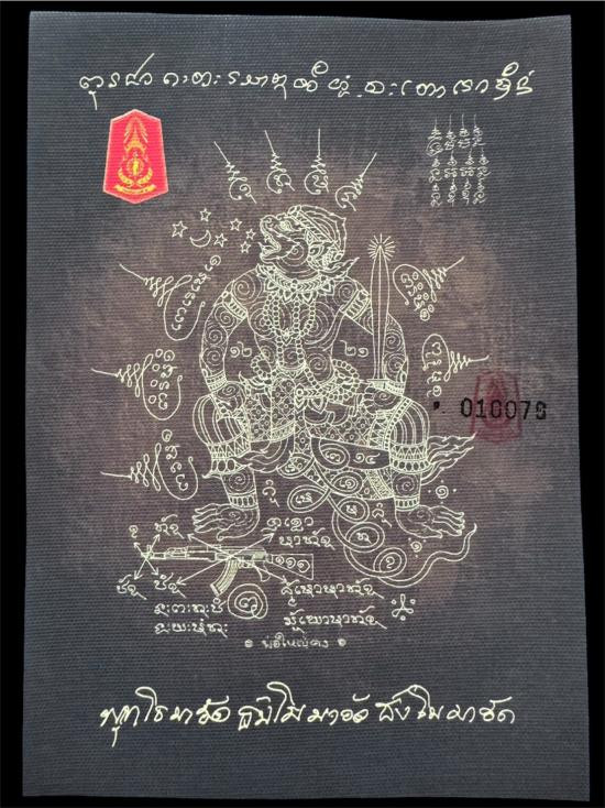 เคาะเดียว 200 ผ้ายันต์พหูรมานสีดำ no.010078 แม่ทัพภาคที่2.ทำแจกทหารชายแดนรอบที่2.หลวงปู่เมตตาอฐิฐานจิตเสกเดี่ยวอย่างเข้มขลัง(ผ้าแคนวาสสกรีนตรากองทัพภาคที่2)รันเลขนัมเบอร์พร้อมประทับหมึกเเดงตรากองทัพ |