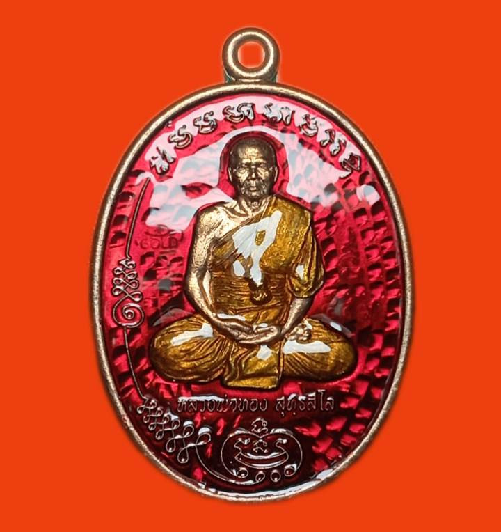 เหรียญเสมาหลวงพ่อทอง รุ่นทองสิบทิศ ปี 2563 เนื้อเงินลงยาสีธงชาติหน้าทองคำ หมายเลข 43 |