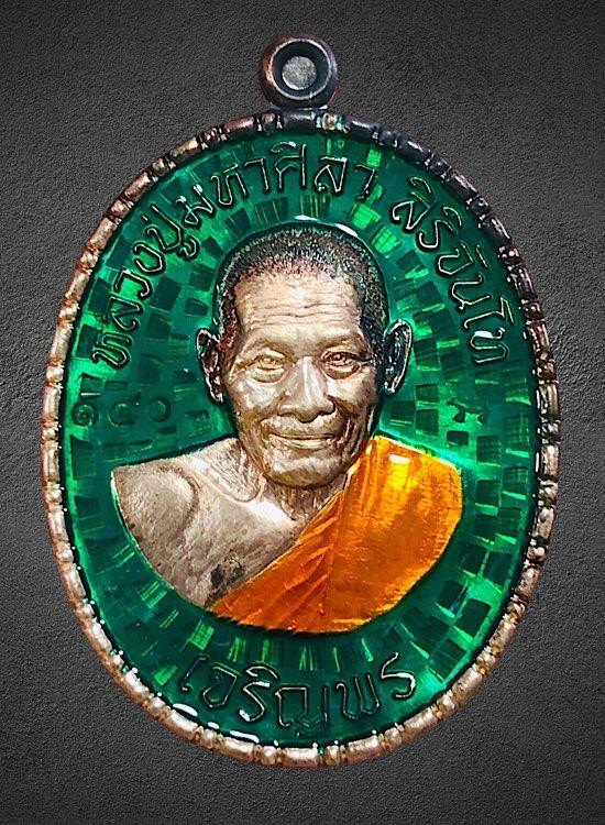 หลวงปู่มหาศิลา เจริญพรล่าง77 ปี64 เนื้อเงินลงยาเขียว ขึ้นรุ้งบางๆ จมูก100 เลข140กล่องเดิม พระสวยนิยมคัดสวยๆ ยุดต้นหมุนเวียนน้อย |