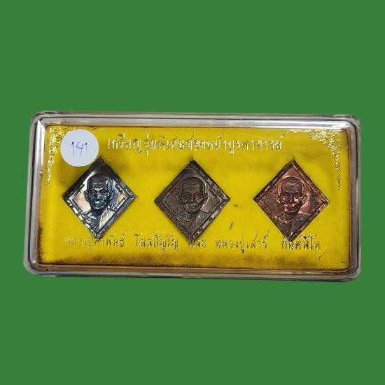 กล่องชุด หลวงปู่คำพันธ์ วัดธาตุมหาชัย เงิน นวะ ทองแดง สภาพสวยตามรูป |