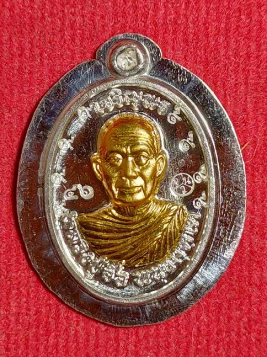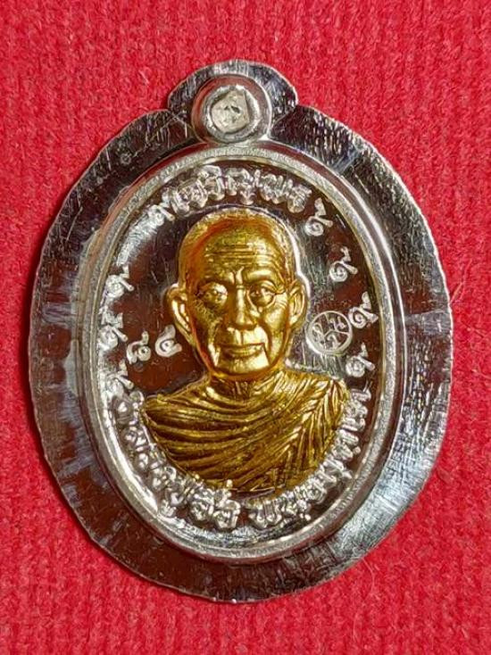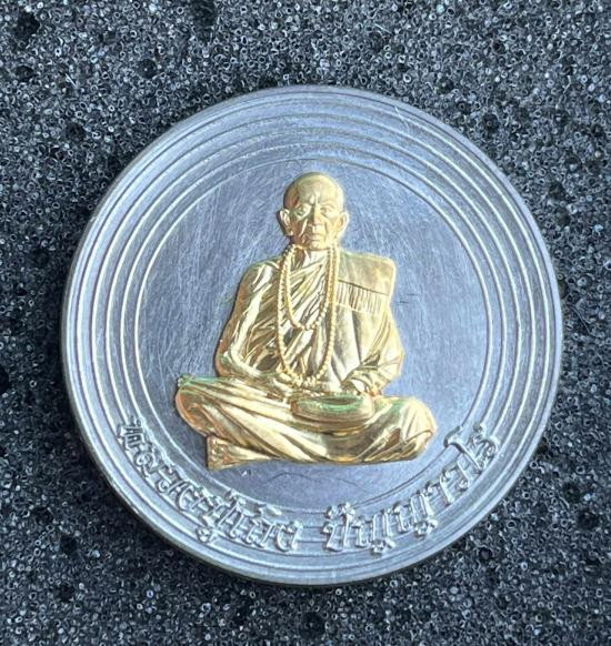 เหรียญ ยืน ๘ ทศวรรษ ยอดรวยรวย หลวงปู่มหาศิลา หลวงปู่ศิลา สิริจันโท ธรรมอุทยาน วัดพระธาตุหมื่นหิน จ.กาฬสินธุ์ เนื้อเงินพระราชทองคำ เลข ๒๐๗ เลี่ยมกันน้ำ ไม่มีกล่องเดิม |
