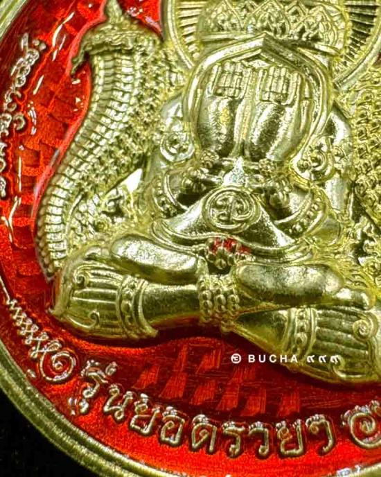 " วัดใจ เคาะเดียวแดง " ท้าวเวสสุวรรณ ยกฐานะ ทองนำโชค หลวงพ่อทอง วัดบ้านไร่ จ.นครราชสีมา ปี 2564 เนื้อสัตตะโลหะ 3K องค์นาค หมายเลข 762 |