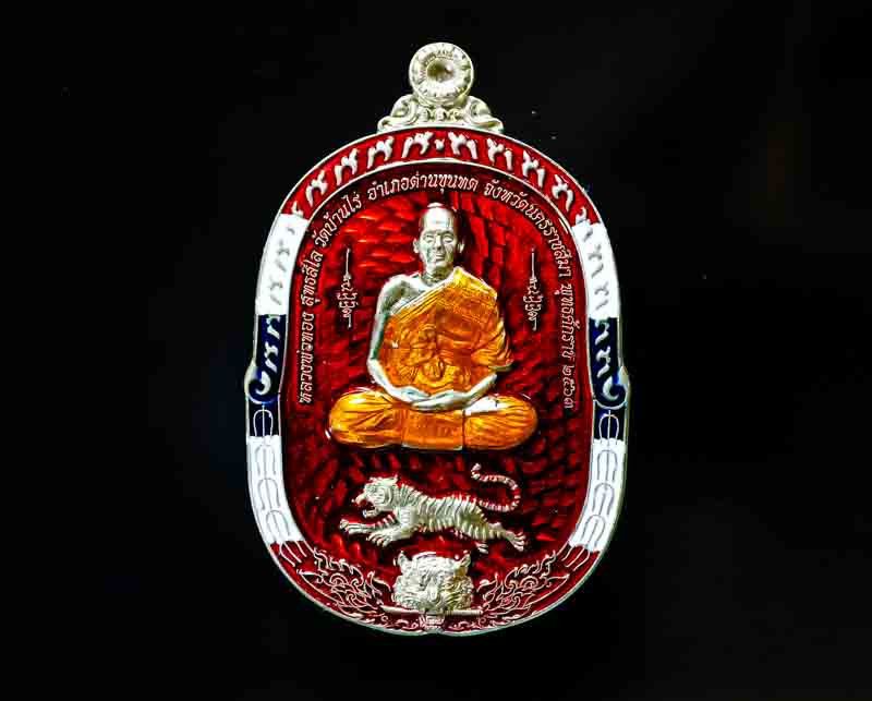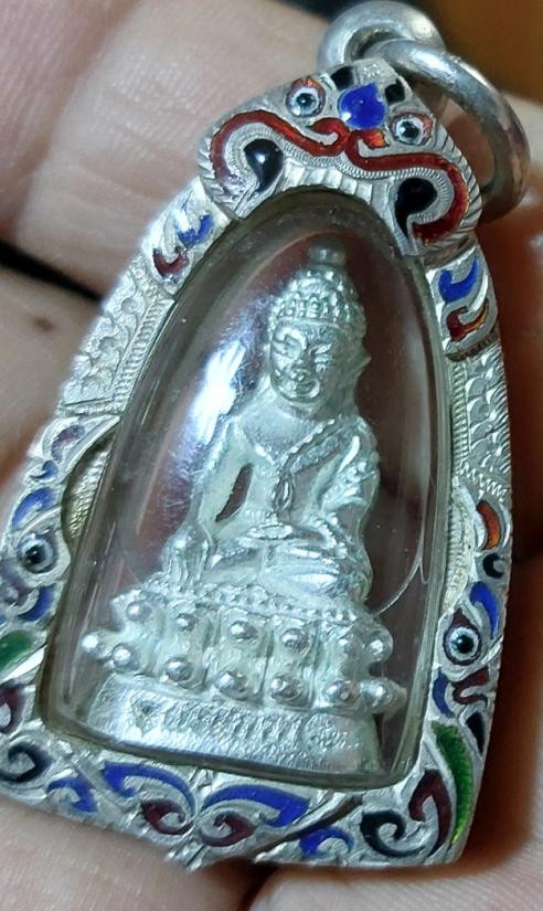 พระชัยวัฒน์ กลวงปู่นิยม กมโล เนื้อเงิน เลี่ยมเงินลงยา สั่งทำมิอ วัดแจ้งนอก ปี2555 |
