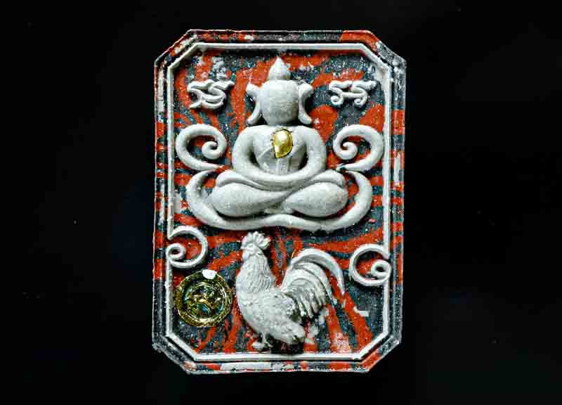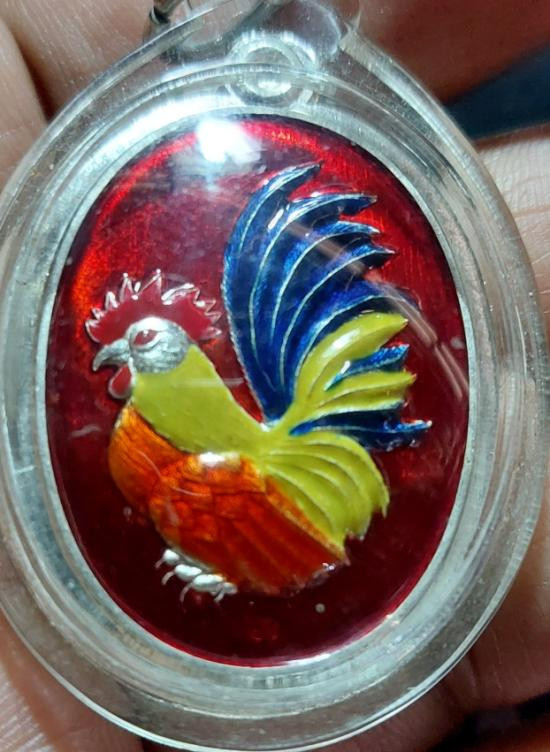 ไก่แจ้ มหาลาภบุญคูณบุญ หลวงปู่บุญ เนื้อเงินลงยา3สีไม่ตัดปีก เลข3 ลอยจารหลวงปู่ สวนนิพพาน วัดปอแดง ปี2558 |
