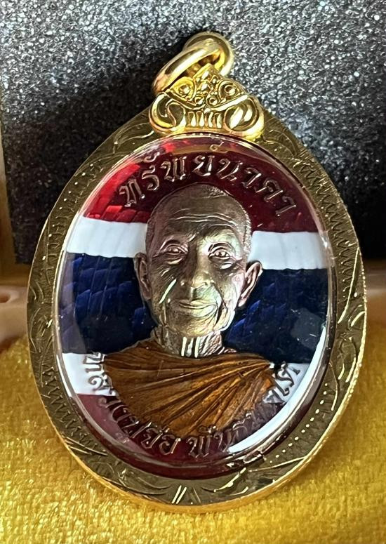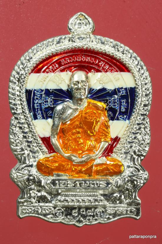 เหรียญนั่งพาน หลวงพ่อทอง รุ่นเจริญพร ปี2564 เนื้อกะไหล่เงินลงยาสีธงชาติ หมายเลข 807 |