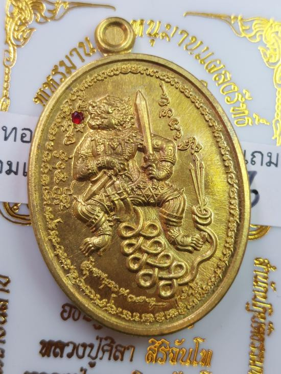 พหูรมาน หลวงปู่ศิลา เมตตาออกแบบเขียนยันต์ เนื้อทองทิพย์ฝังพลอยแดงแถมมาพร้อมเนื้อทองคำ no.393 |