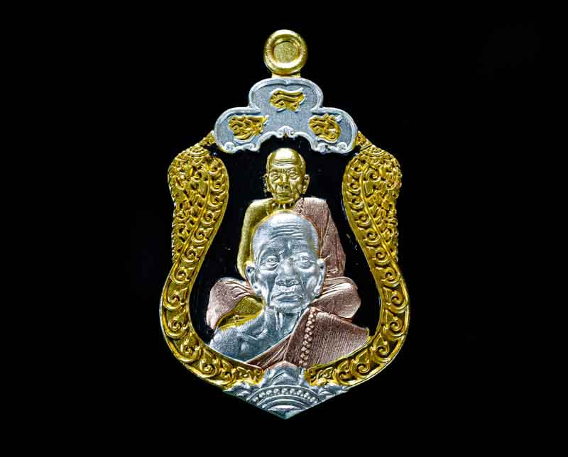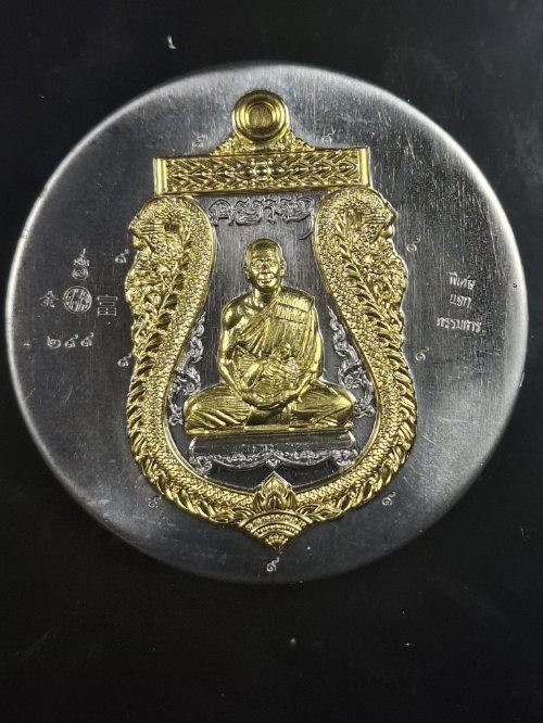 เหรียญเสมารวยทันใจ หลวงปู่ศิลา สิริจันโท รุ่นรวยรวยล้านล้าน เนื้อทองแดงรมดำหน้ากากทองทิพย์ แจกกรรมการ จัดสร้าง1,999องค์ no.60 |