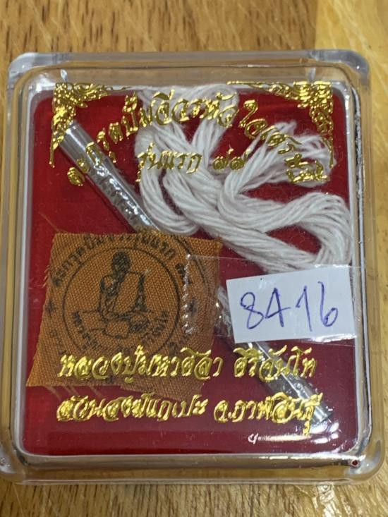 เนื้อเงินกำลังขึ้น ตะกรุดปั้มจีวรหัวใจเศรษฐี รุ่นแรก 77 หลวงปู่ศิลา ศิริจันโท ยุคต้น จ.กาฬสินธุ์ เนื้อเงิน ได้ครบทั้ง 3 รายการ ตะกรุดเงิน ,จีวร ,สายสิญจน์ ตอกโค๊ด เลขสวย 8416 สวยมาก กล่องเดิมครับ |