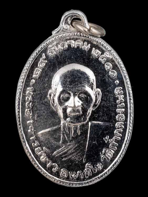 เหรียญเจริญพรเมตตามหานิยม หลวงปู่นิยม กมโล ๙๔ ปี เนื้อเงิน เลขเบิล ๖๖ วัดแจ้งนอก ปี 2555 |