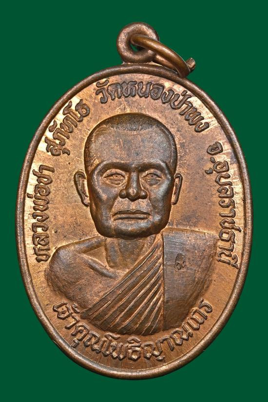พระเหรียญหลวงพ่อทอง วัดบ้านไร่นครราชสีมาสภาพสวยเดิมพร้อมเลี่ยมเงินอย่างดี |