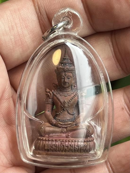 พระแก้วมรกต รุ่นแรก หลวงปู่สอ วัดโพธิ์ศรี จ.นครพนม เนื้อทองแดงเถื่อนก้นอุดผงฝังเม็ดกริ่งเงิน สร้างน้อยแค่599องค์ |
