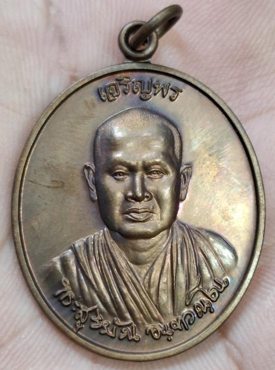 เหรียญเจริญพรบน พระอาจารย์สุริยันต์ วัดป่าฉัพพรรณรังสี จ.ชัยภูมิ เนื้อทองแดง |