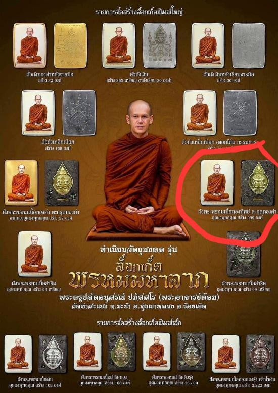 สมเด็จพระพุทธเจ้า 5 พระองค์ รุ่นรวยล้านล้าน หลวงปู่ศิลา วัดโพธิ์ศรีสะอาด จ.กาฬสินธุ์ พิมพ์เกศทะลุซุ้ม เนื้อกากยายักษ์ คลุกว่านเรืองแสง ตะกรุดเงิน 3 ดอก มวลสารมีกลิ่นหอม เลขโค้ด 40 #หลวงปู่มหาศิลา |