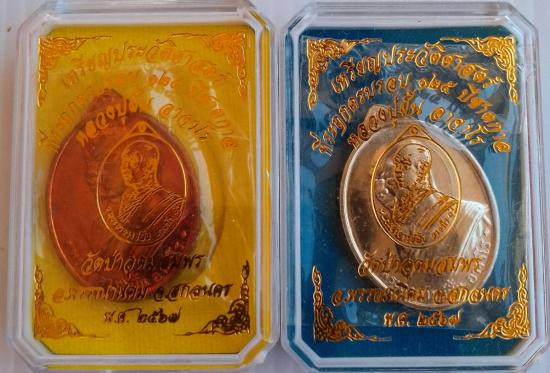 หลวงพ่อทอง วัดบ้านไร่ เหรียญลาภยศ ปี2557 เนื้อฝาบาตร ไม่มีกล่อง จำนวน 2 เหรียญ |