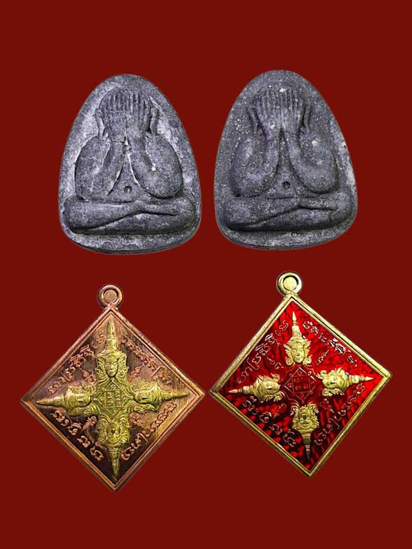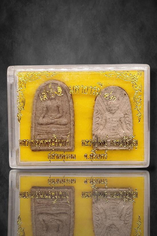 พระพิมพ์ดรรชนี รูปเหมือนหลวงปู่ และหลวงพ่อเพชรสุรินทร์ เนื้อผงเทพประทาน รุ่น " เสาร์5 มหาบารมี " ปี 2543 หลวงปู่หงษ์ สุสานทุ่งมน สุรินทร์ |
