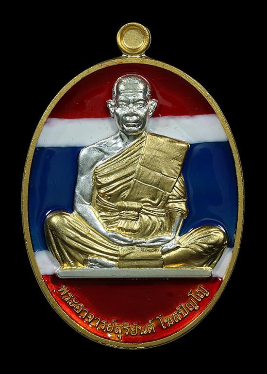 เหรียญเสมา หลวงพ่อทอง รุ่นทองสิบทิศ ปี 2563 เนื้อเงินหน้ากากทองคำ ลงยาสีธงชาติ หมายเลข 54 |