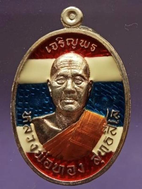 100 เดียว หลวงพ่อทอง ออกวัดแจ้งนอก เจริญพรบน 63 เสาร์ห้า เนื้อเงินลงยา ลายธงชาติ 2 หน้า #60 กล่องเดิม สวยกริบ |