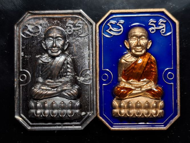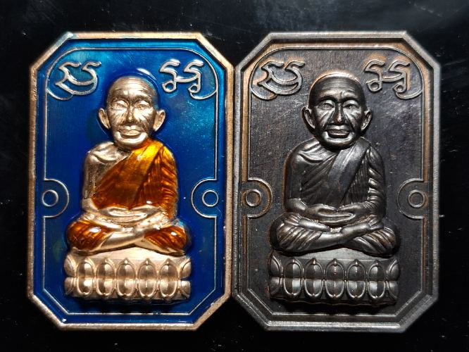 เคาะเดียว...แดง เหรียญสมปรารถนา ครูบาแบ่ง วัดบ้านโตนด จ.นครราชสีมา ปี2556 เนื้อเงินลงยาสีฟ้าจีวรเหลือง หลังเรียบมีปีก,จาร,โค๊ตและหมายเลข แยกจากชุดกรรมการ |