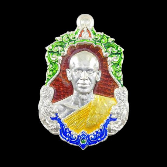 พระอาจารย์ต้อม วัดท่าสะแบง จ.ร้อยเอ็ด รุ่นรวยนะ9ดี พิมพ์เสือคู่บารมี ( เนื้อเงินลงยาแดงฝังพลอยเขียว ) No.126 พร้อมกล่องเดิม |