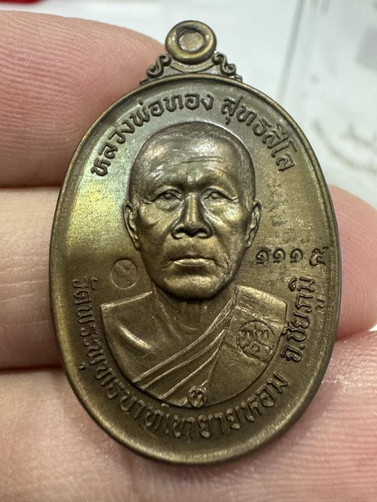เหรียญสร้างบารมี หลวงพ่อทอง สุทธสีโล วัดพระพุทธบาทเขายายหอม ปี 2559 เนื้อนวะโลหะหน้ากากเงิน เลข 722 กล่อง สร้างน้อย 999 เหรียญ |