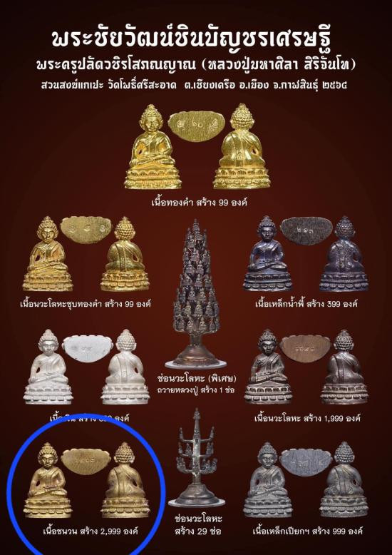 หลวงพ่อทอง วัดบ้านไร่ ปรกใบมะขามรุ่นแรก เนื้ออัลปาก้า 4 องค์ เนื้อฝาบาตร 4 องค์ โค๊ต ท 2 ตัว ชุดทองคำ ปี 2557 จำนวน 8 องค์ |