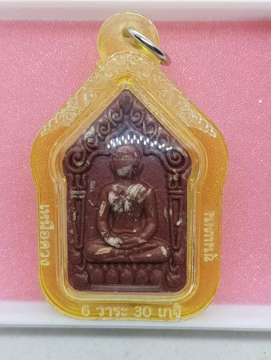 วัดใจเคาะเดียว........100.......ผงกลีบบัว หลวงปู่พรหมมา เขมจาโร สำนักหงฆ์สวนหินผานางคอย วัดสวนหิน จ.อุบลราชธานี รุ่นคุ้มครองแรงงาน ปี 2538 (( ฝังตะกรุดทองคำ )) สวยคากล่องเดิม |