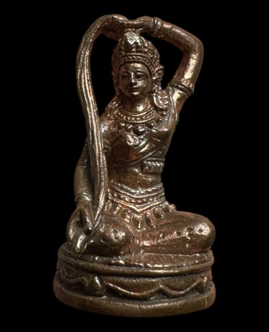 หลวงปู่หงษ์ พระแม่ธรณี รุ่นแรก เนื้อสำริด ปี 2549 พร้อมซองเดิม ตอกโค๊ตตอกหมายเลขใต้ฐาน |
