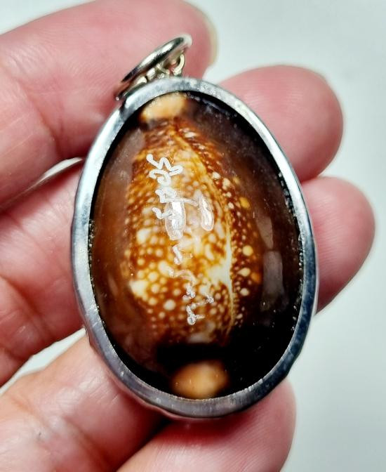 เสมาเสือคาบดาบ หลวงปู่จื่อ เนื้อนวะลงยาขอบเงิน องค์เงิน หมายเลข94 |
