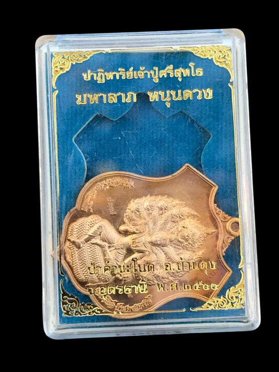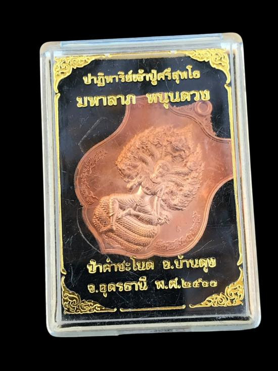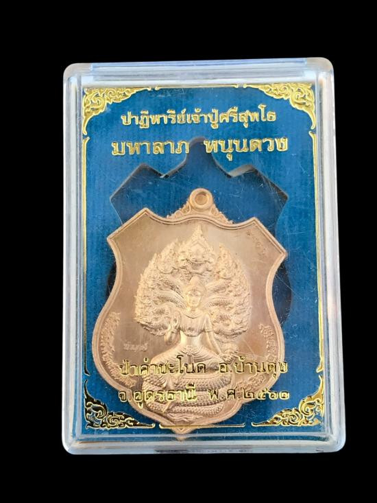 ล็อกเก็ตโปร่งฟ้ามหาโภคทรัพย์ ( ลายรดน้ำทองรุ่นแรก ) หมายเลข ๑๙๙ เลขสุดท้ายของรุ่น หลวงปู่คำบุ วัดกุดชุมพู จ.อุบลราชธานี มาพร้อมกล่องเดิม |